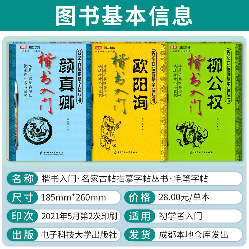 毛笔字帖临摹颜真卿柳公权欧阳询楷书入门基础教程 学生成人初学者书法毛笔软笔楷书练字帖培训教材 名家古贴描摹字贴毛笔字帖