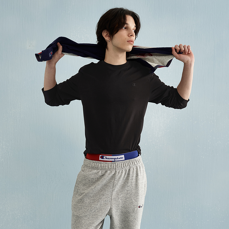 白色打底衫 秋冬季 潮流字母上衣服A t恤男2025新款 班尼路双面绒长袖