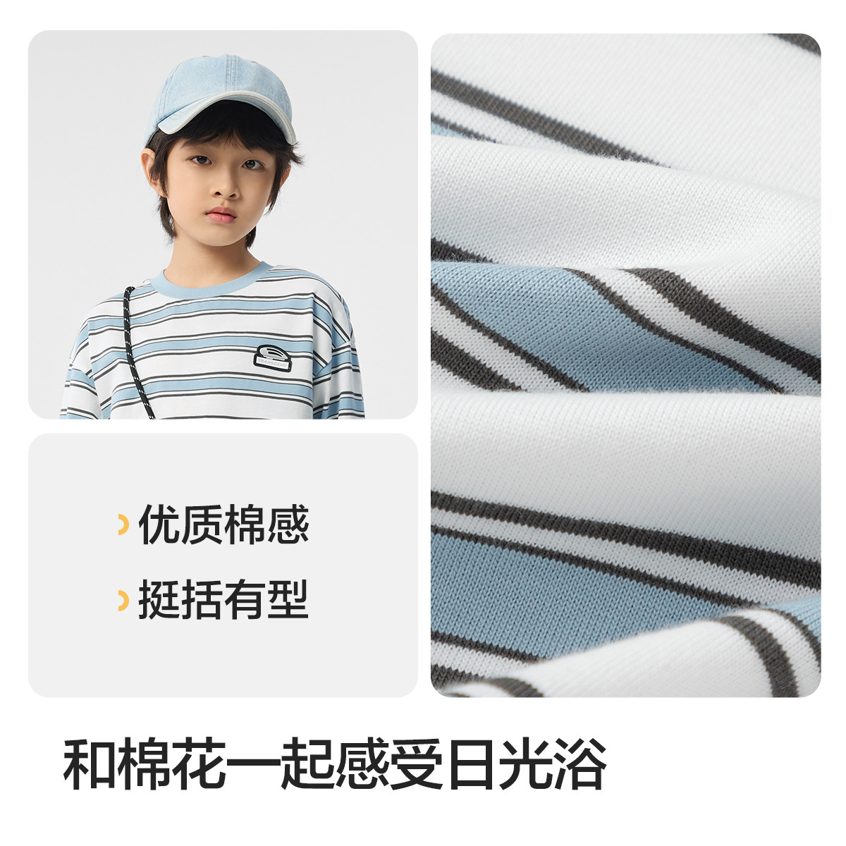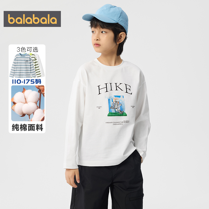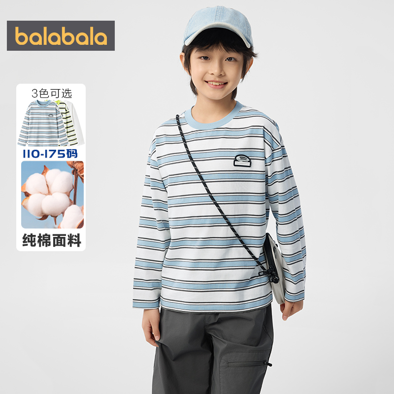 儿童纯棉上衣 春秋童装 巴拉巴拉男童长袖 T恤中大童宝宝条纹打底衫