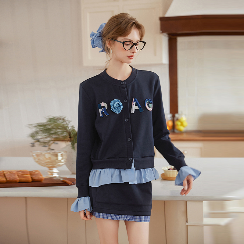 拼接毛衣短外套上衣女 2025春新款 白鹿语假两件长袖 气质针织开衫
