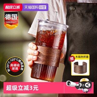 高颜值 玻璃大容量吸管杯咖啡奶茶喝水杯子男女生2025新款 自营