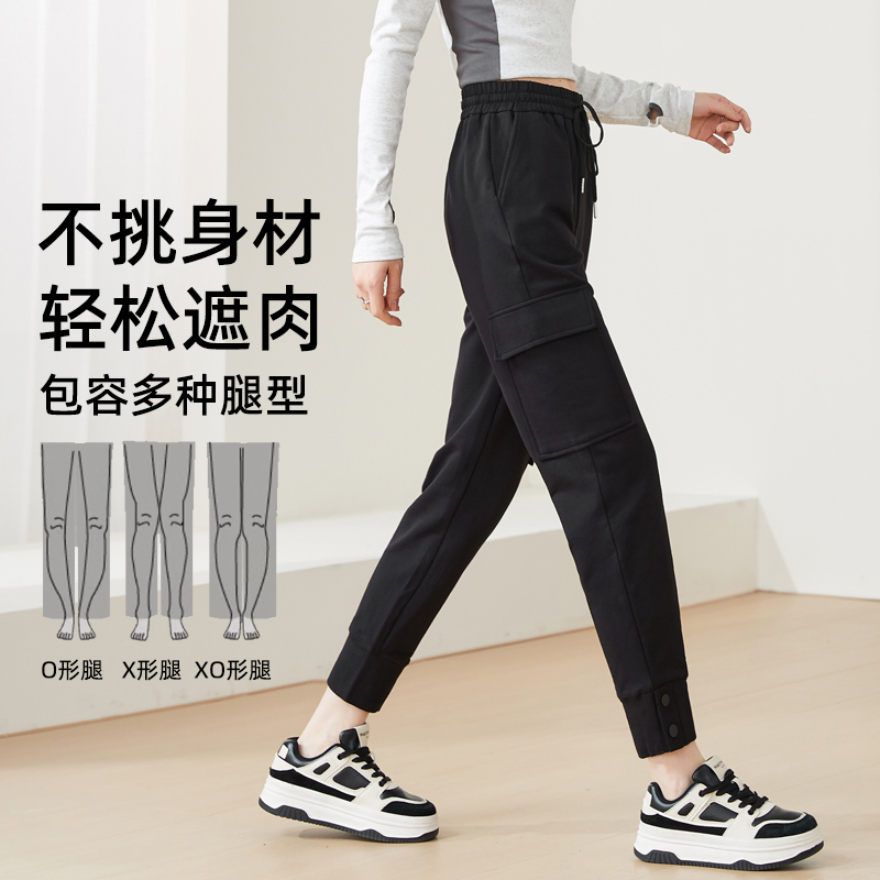 高腰束脚卫裤 逸阳特价 女宽松直显瘦黑色运动裤 裤 清仓学生九分工装