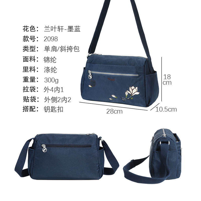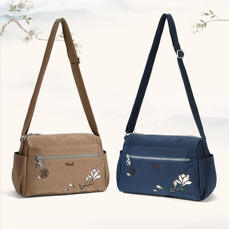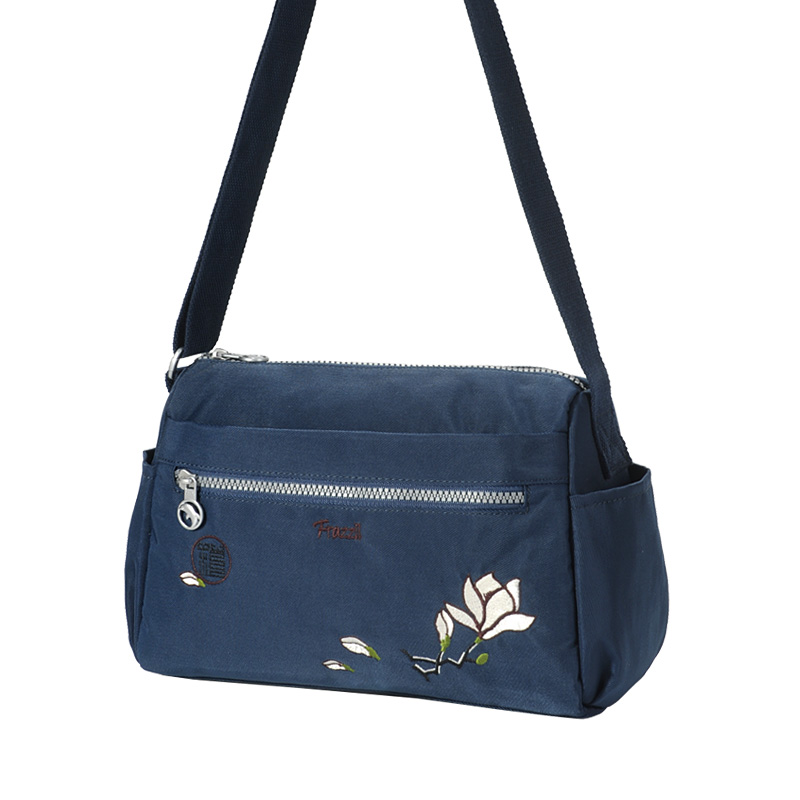 法姿包包女斜挎包2025新款 刺绣轻便妈妈潮包 休闲尼龙旅游小包时尚