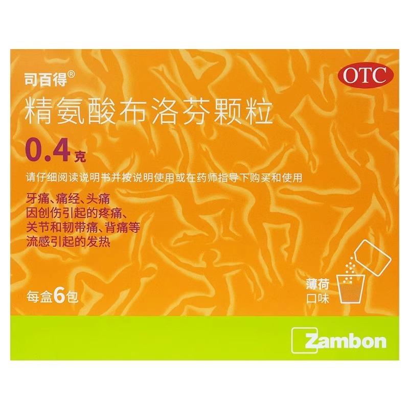 牙痛痛经头痛流感引起 司百得 6袋 0.4g 发热 精氨酸布洛芬颗粒
