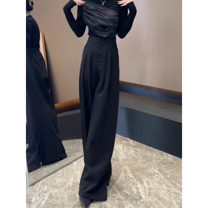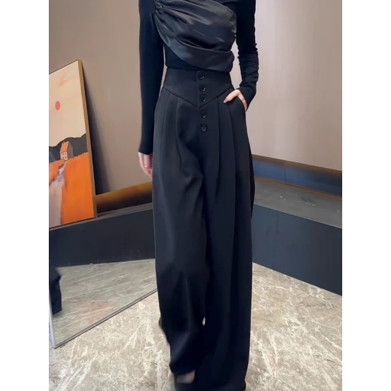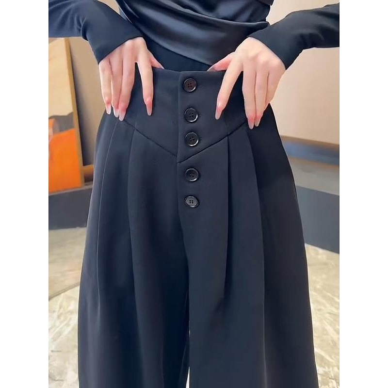 阔腿裤 2025早春新款 加绒高腰显瘦西装 大码 欧货高级感单排扣休闲裤