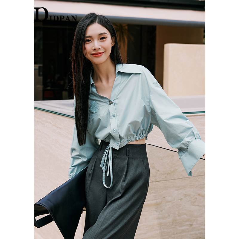 短款 IDPAN淡人女装 设计感显瘦长袖 2025新款 衬衣气质v领棉上衣 衬衫