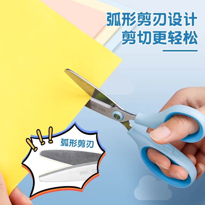 得力带保护套儿童剪刀安全手工剪刀小型小学生宝宝幼儿园专用小剪子特氟龙防锈不粘胶美工美术剪纸圆头不伤手