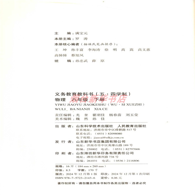 2025春五四制物理8八年级下册义务教育教科书初中课本教材鲁科版 社yt 山东科学技术出版