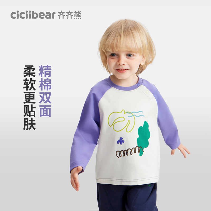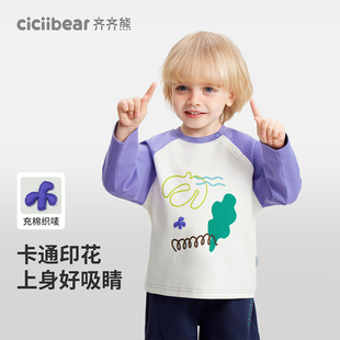 7A抗菌 上衣男童打底衫 齐齐熊宝宝T恤2025春季 儿童长袖 春装 新款