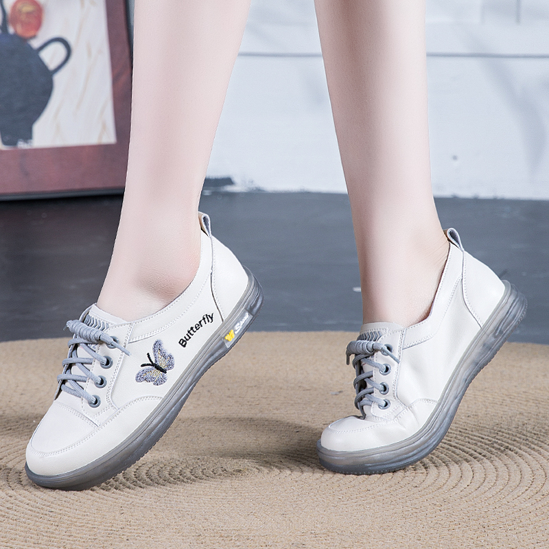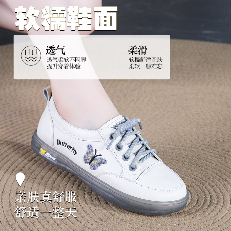 真皮一脚蹬休闲平底妈妈皮鞋 女鞋 秋季 2025新款 运动 软底女士小白鞋