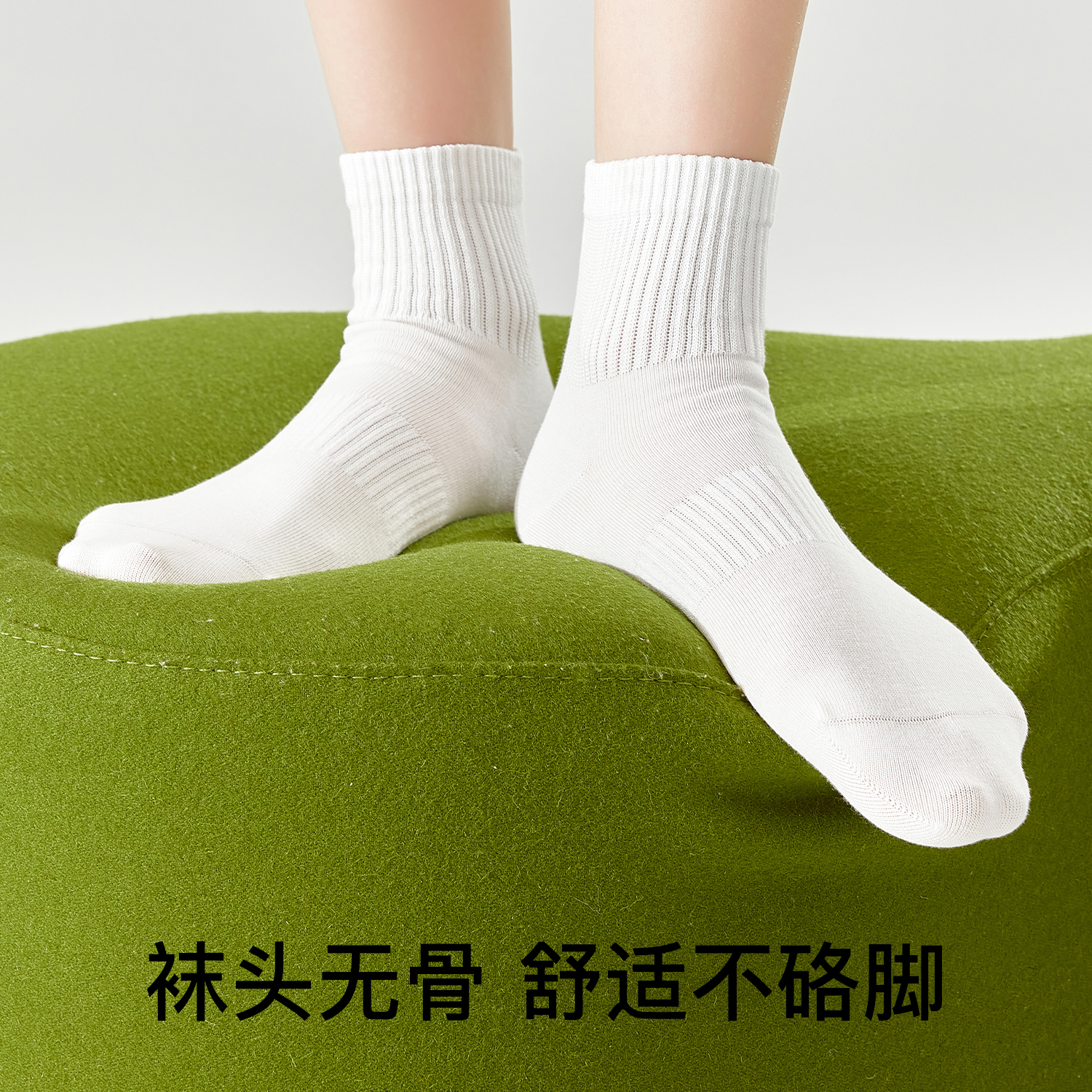 全棉短袜子女春秋季 中短筒袜无骨 纯棉吸汗防臭抗菌透气运动夏薄款