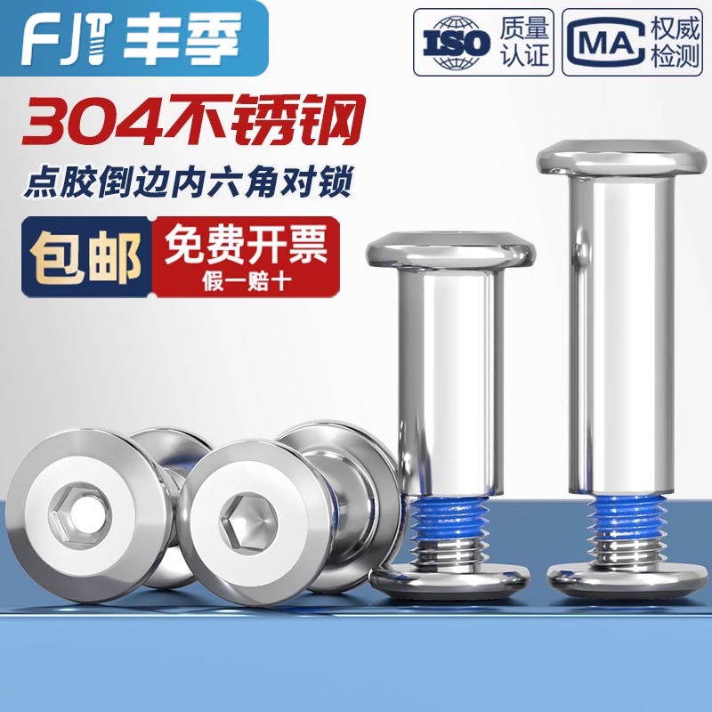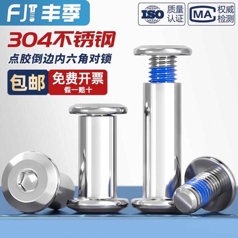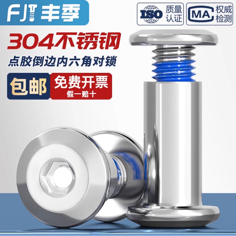304不锈钢点胶对锁子母螺丝家具夹板螺母内六角耐脱防落防松大全