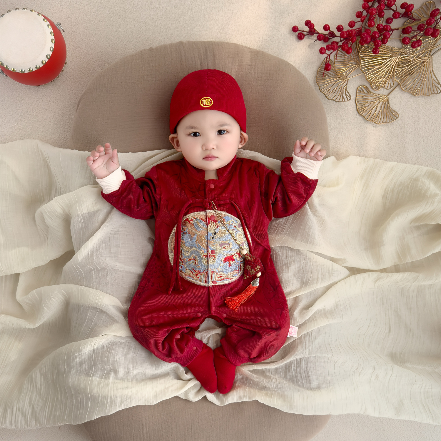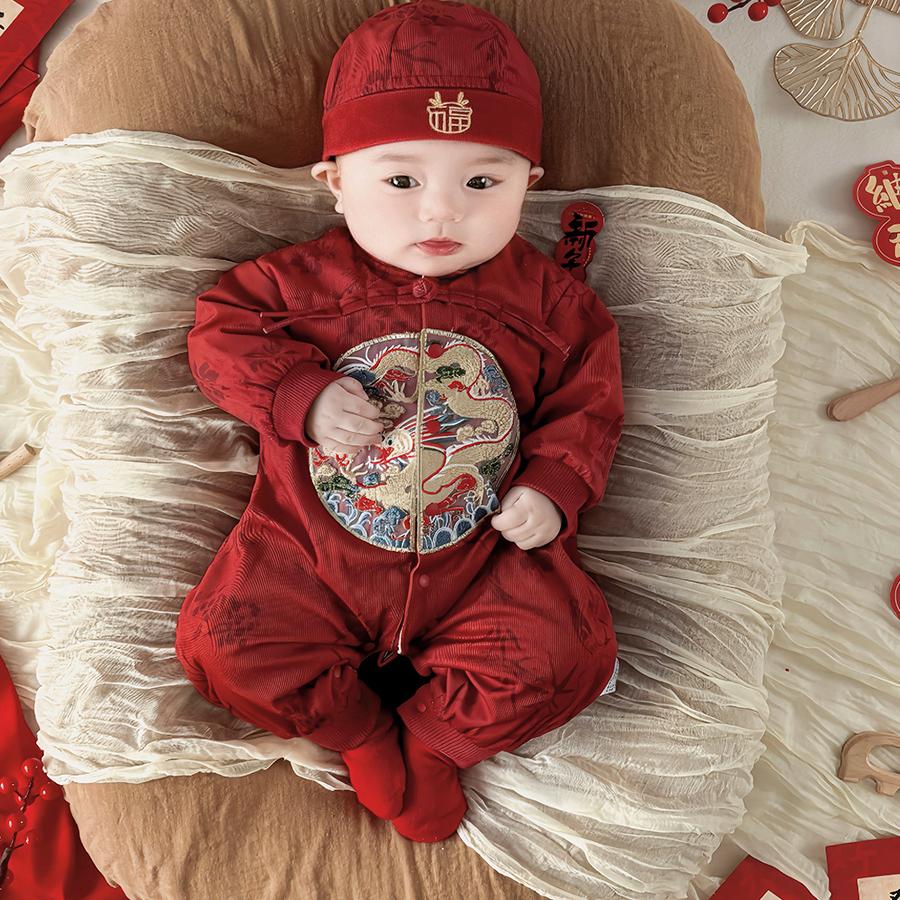 男宝宝唐装 满月服少爷服喜庆中国风连体衣 婴儿春秋周岁礼服春秋款