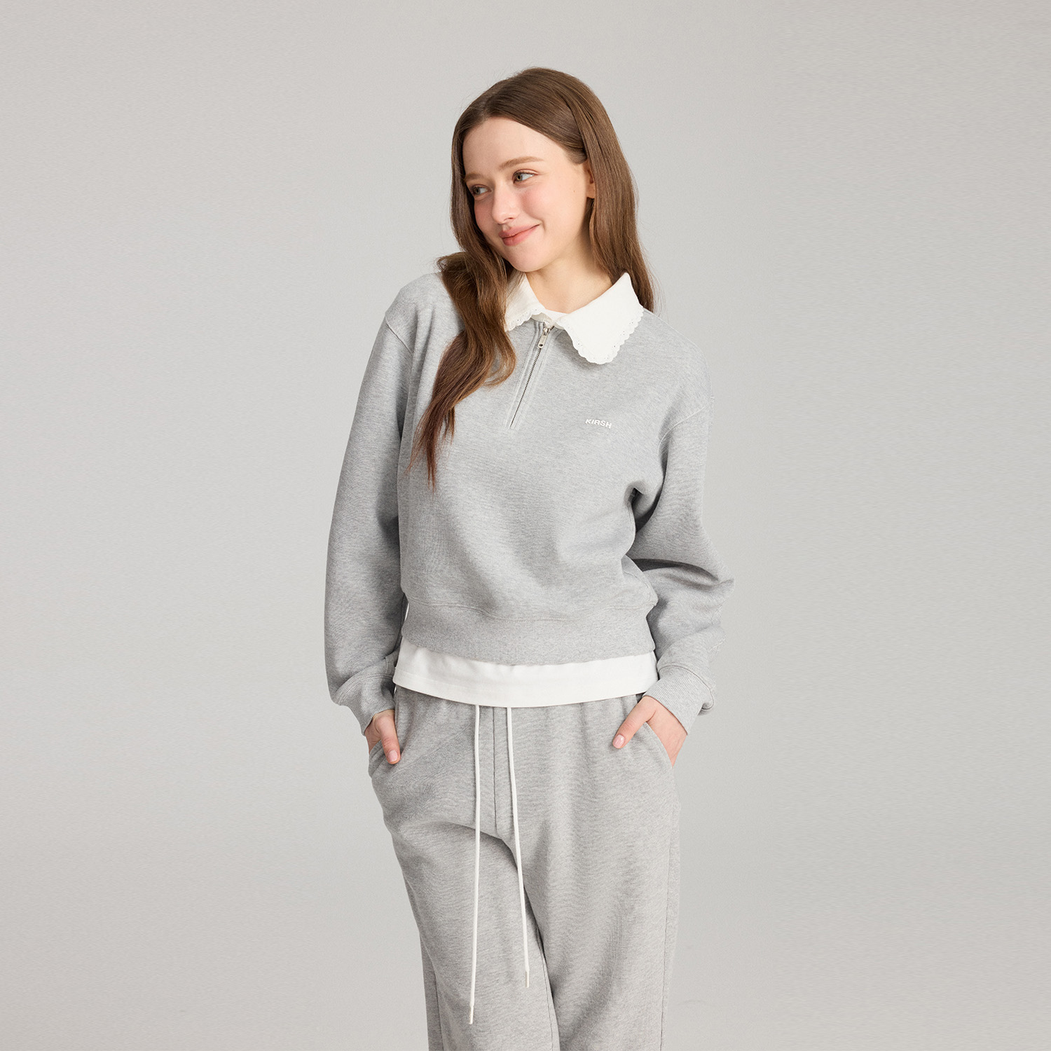 樱桃KIRSH 甜美可爱上衣 娃娃领半门襟卫衣女2025春秋翻领款