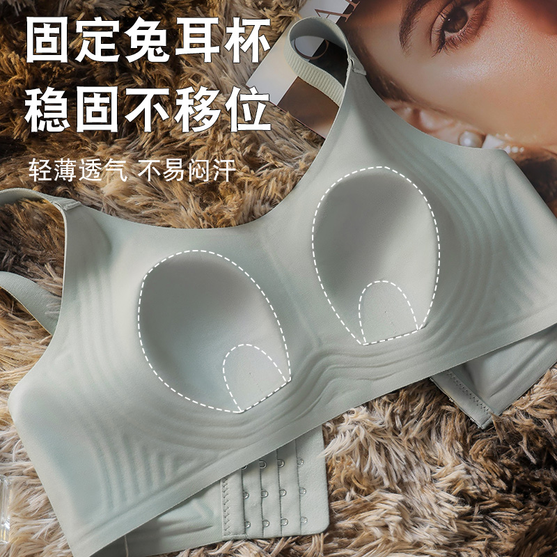 六只兔子前扣内衣女性感深V美背大胸显小法式 三角杯无钢圈文胸罩
