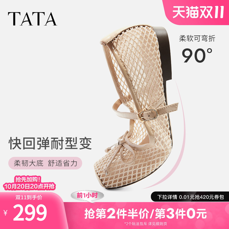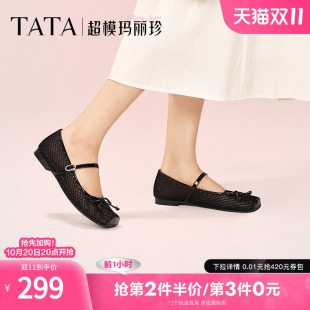 鞋 TATA他她女鞋 真皮透气2025新款 浅口平底单鞋 子JQF01BQ5 玛丽珍鞋