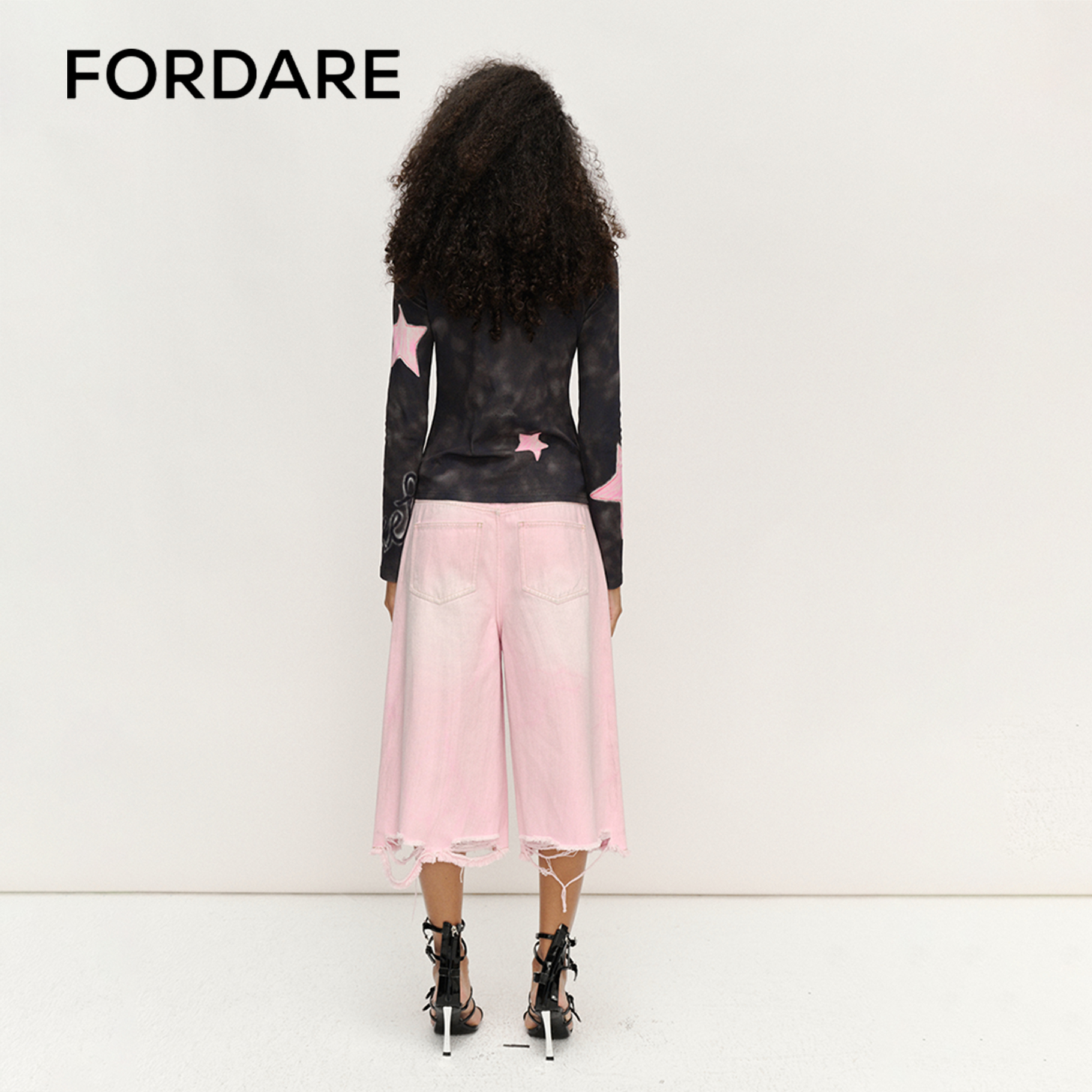 毛边侧分割线高腰阔腿显瘦牛仔裤 复古水洗个性 女 新款 ONLY2025秋季