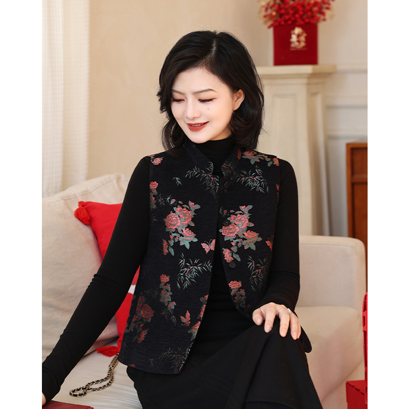 手工绣花圆领针织马甲背心女2025秋冬新款 宽松外穿马夹毛衣坎肩潮