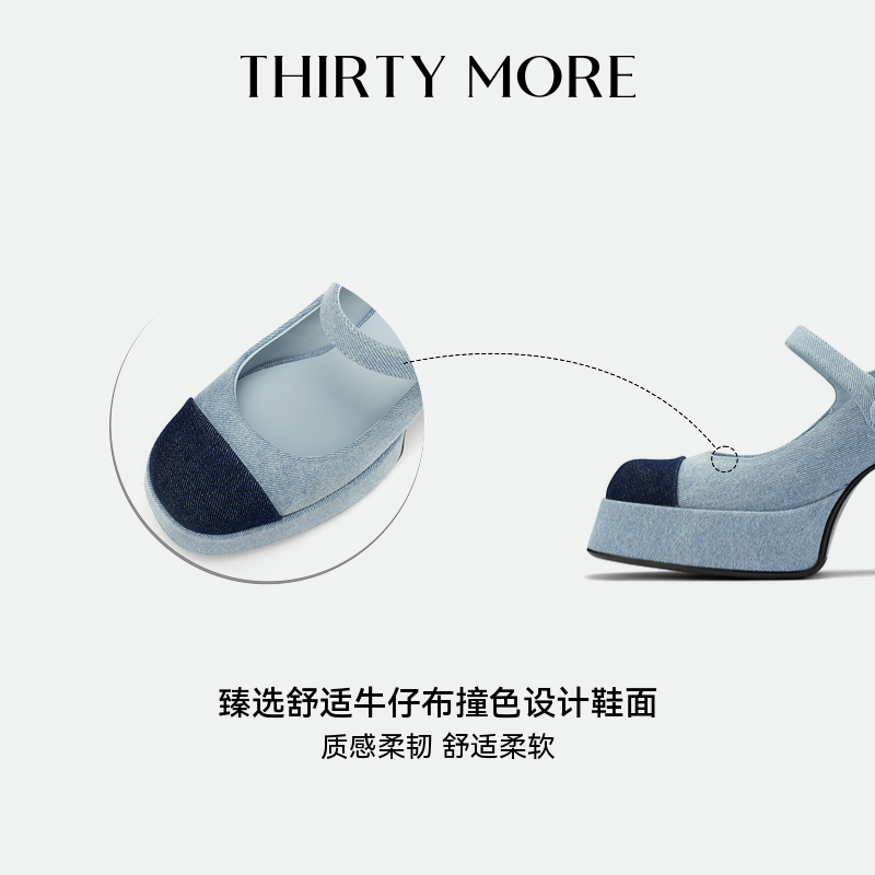 玩转牛仔 新款 Thirty 女2025春季 粗高跟单鞋 More复古玛丽珍鞋
