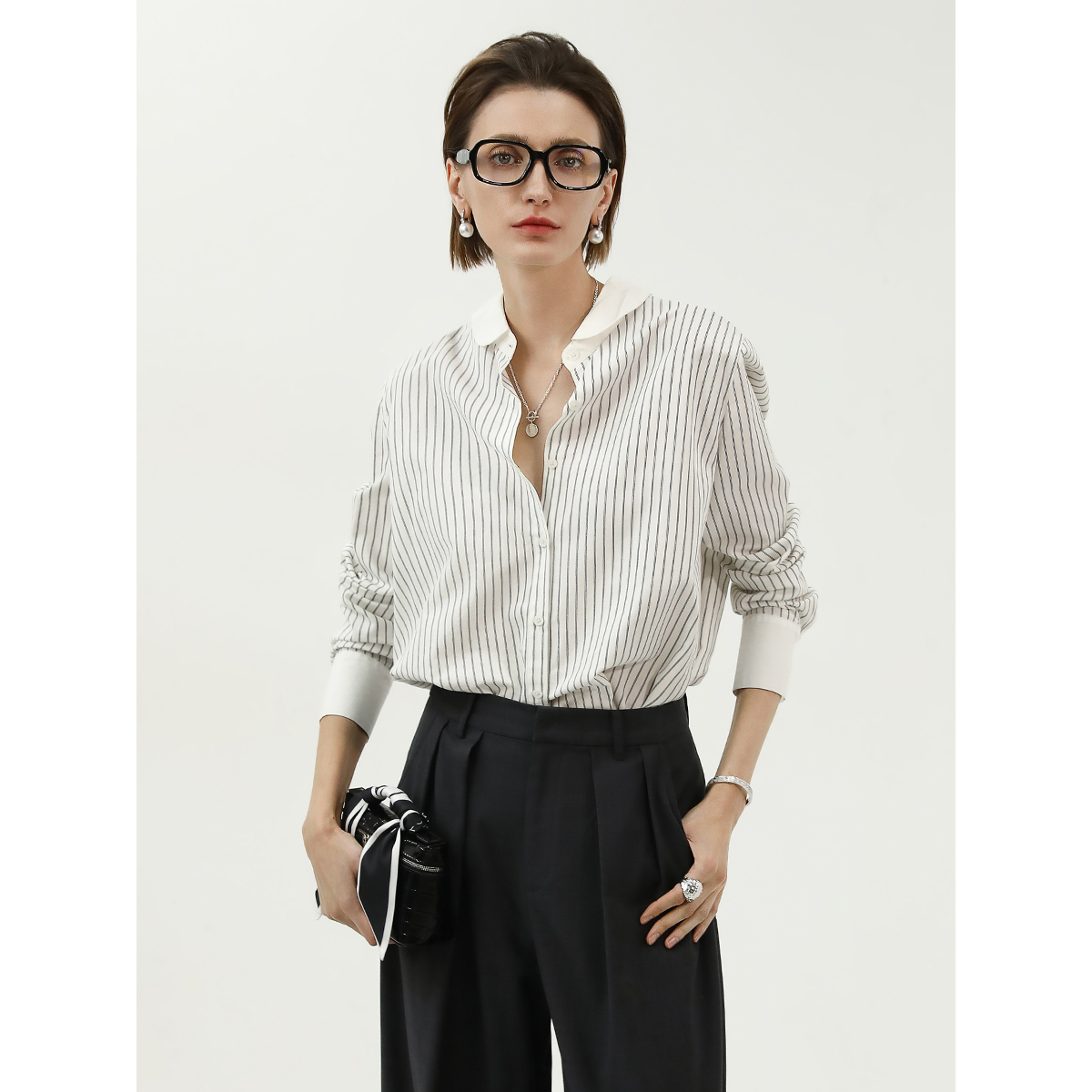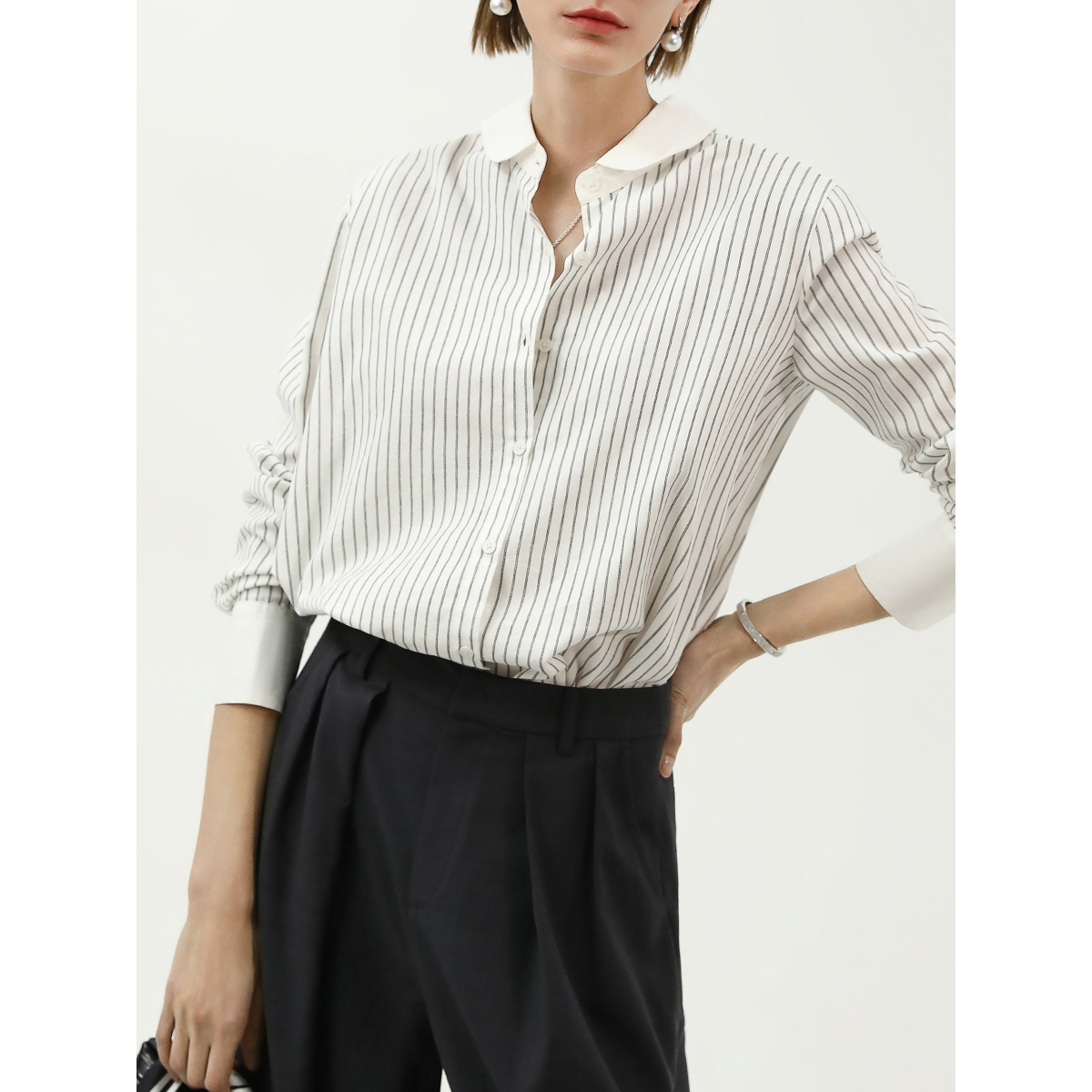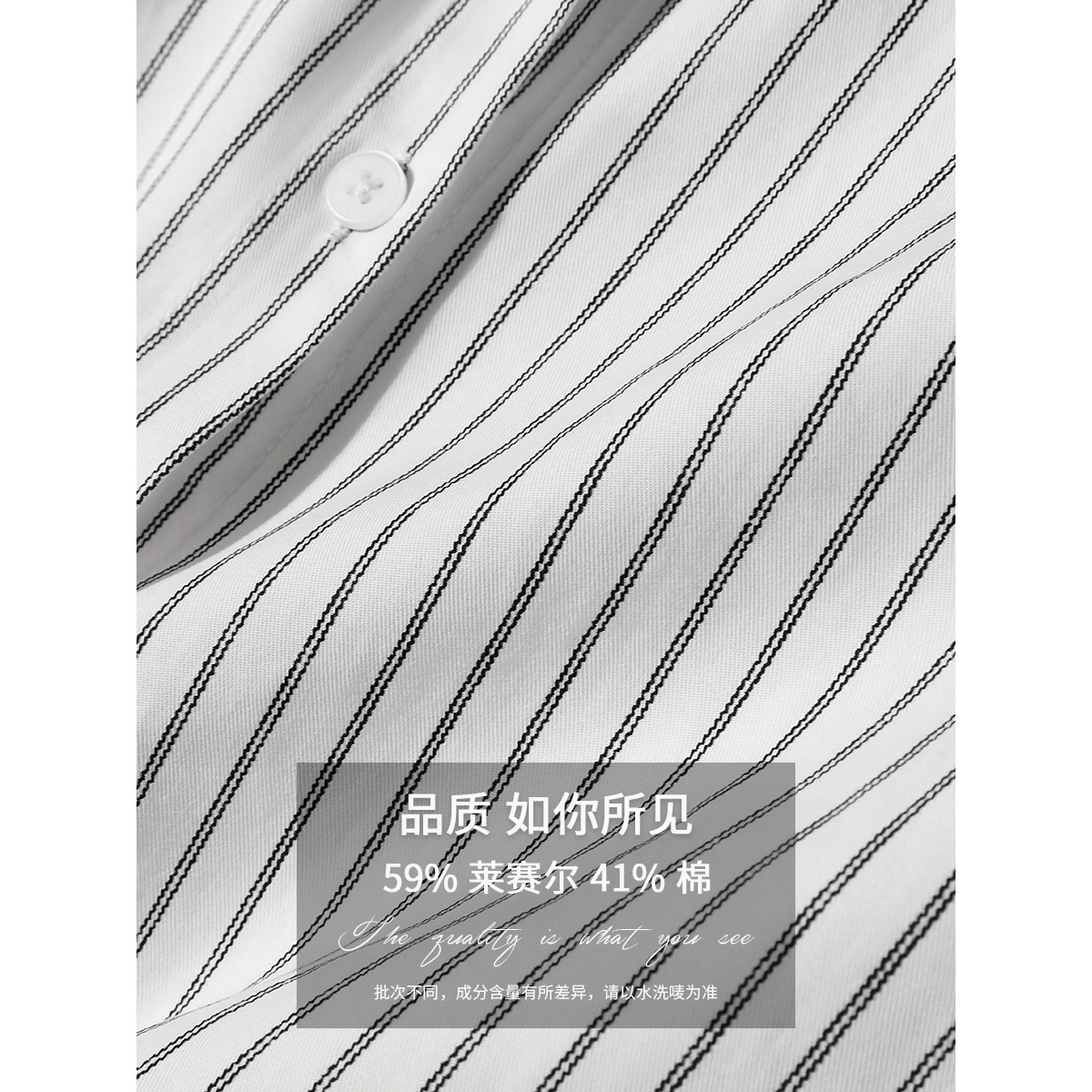 通勤长袖 COCOBELLA彼得潘领莱赛尔条纹衬衫 衬衣SR7002 双11预售