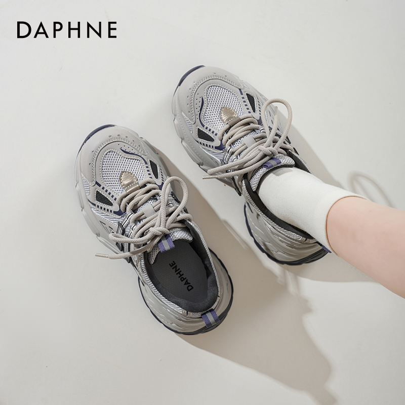 女款 子女撞色运动鞋 2025新款 厚底增高鞋 春秋女鞋 达芙妮灰色老爹鞋