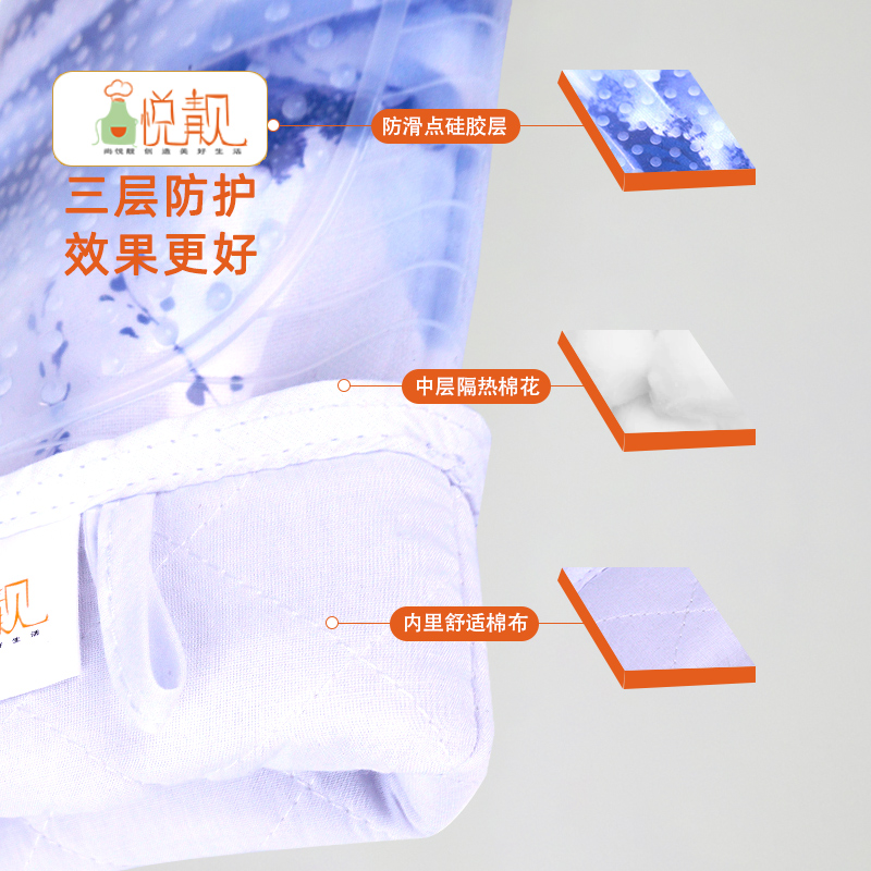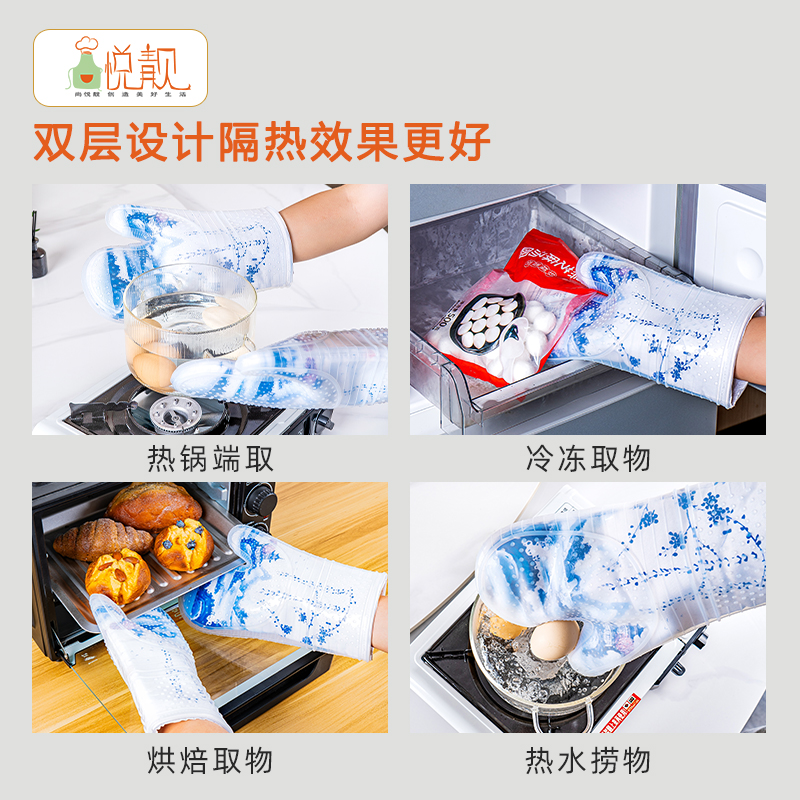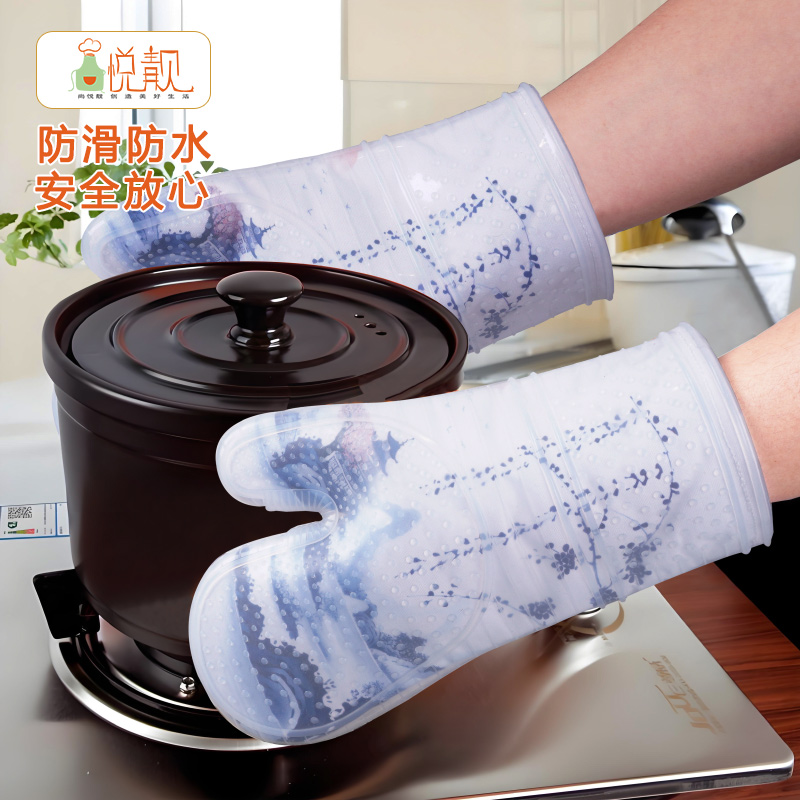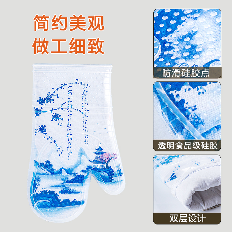 山水画烤箱手套防烫加厚耐高温烘焙食品级硅胶防水厨房家用棉手套