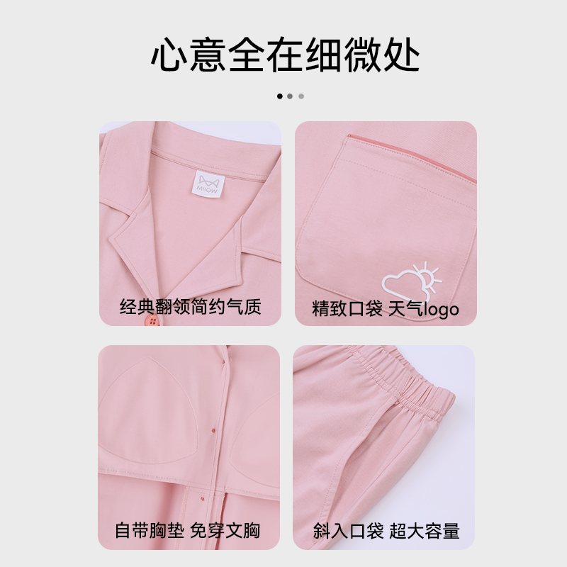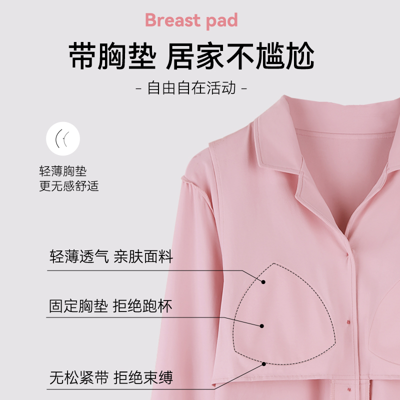 开衫 都市丽人纯棉睡衣女春秋款 2025新款 套装 甜美家居服 带胸垫长袖