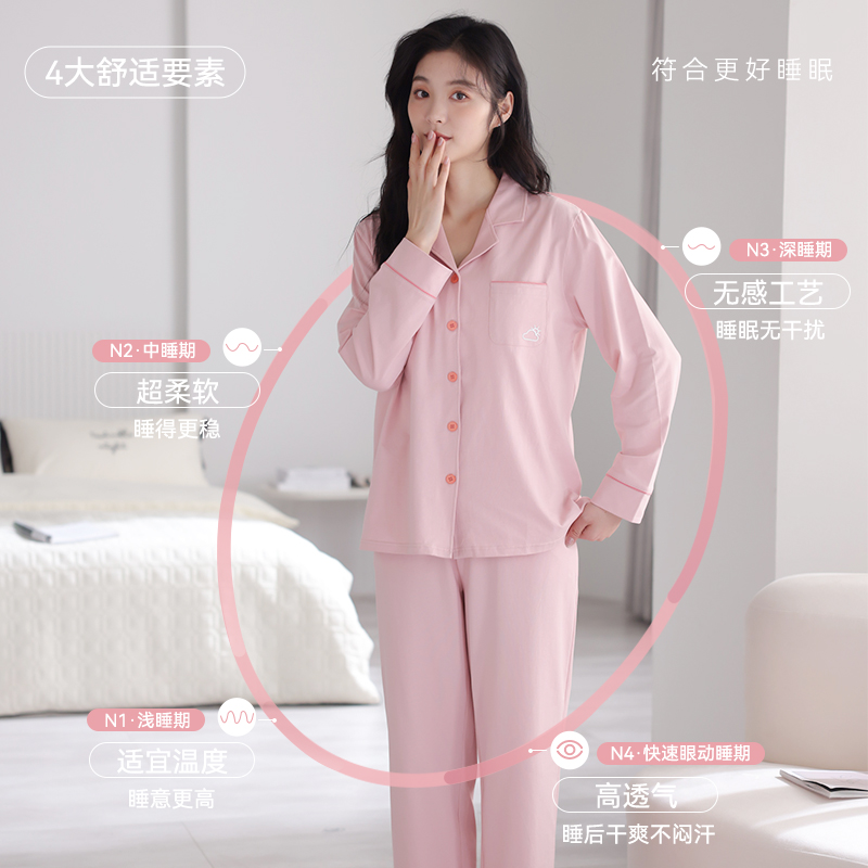 睡衣套装 纯棉春秋季 少女长袖 全棉高级感开衫 家居服 春秋款 芬腾新款