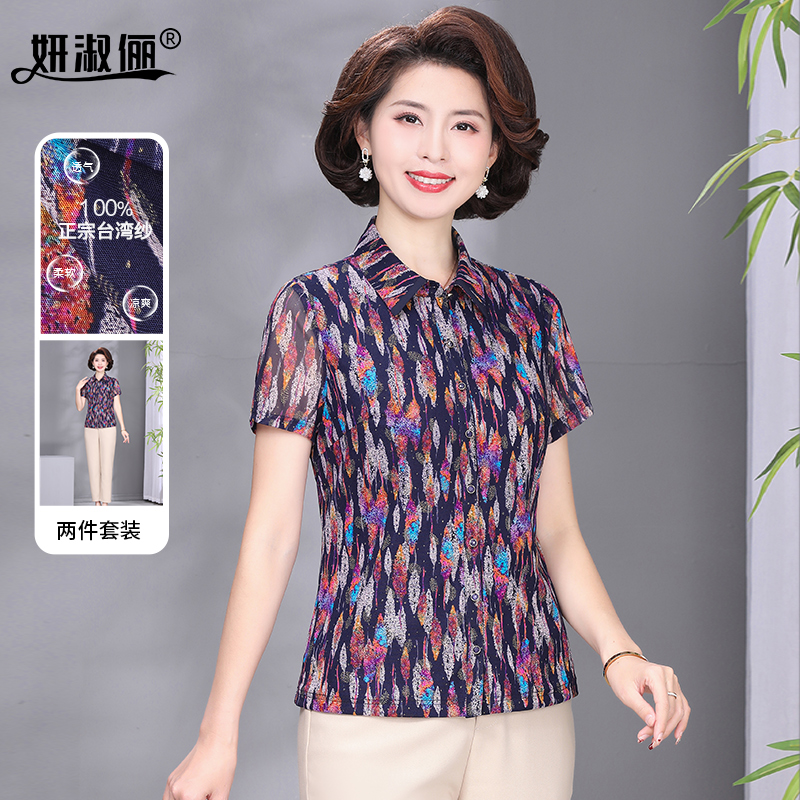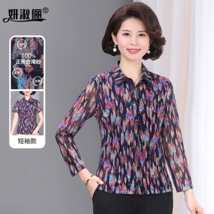 上衣小衫 洋气衬衫 时尚 高贵台湾纱中老年人短袖 女 2025新款 妈妈秋装