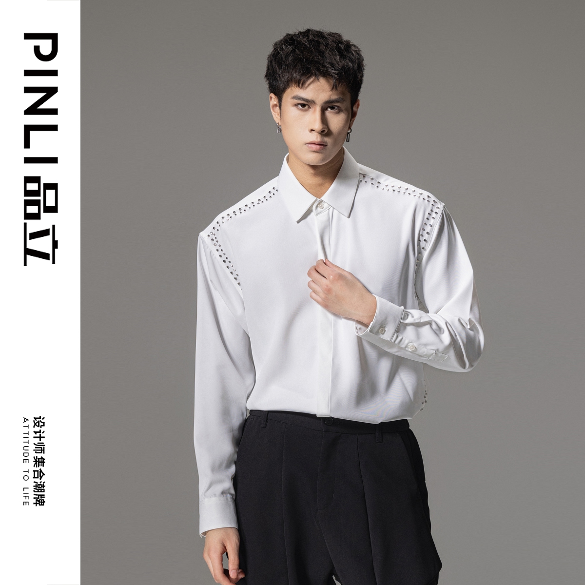 修身 商务正装 职业大码 黑色工装 衬衣 春秋白衬衫 上班白色西装 男长袖