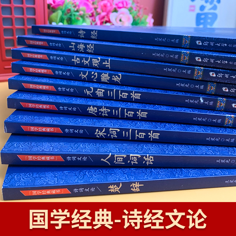 国学经典 中小学生课外阅读书 畅销书籍 曲三百首诗经楚辞古文观止人间词话文心雕龙山海经原文注释译文 全9册诗词文论唐诗宋词元