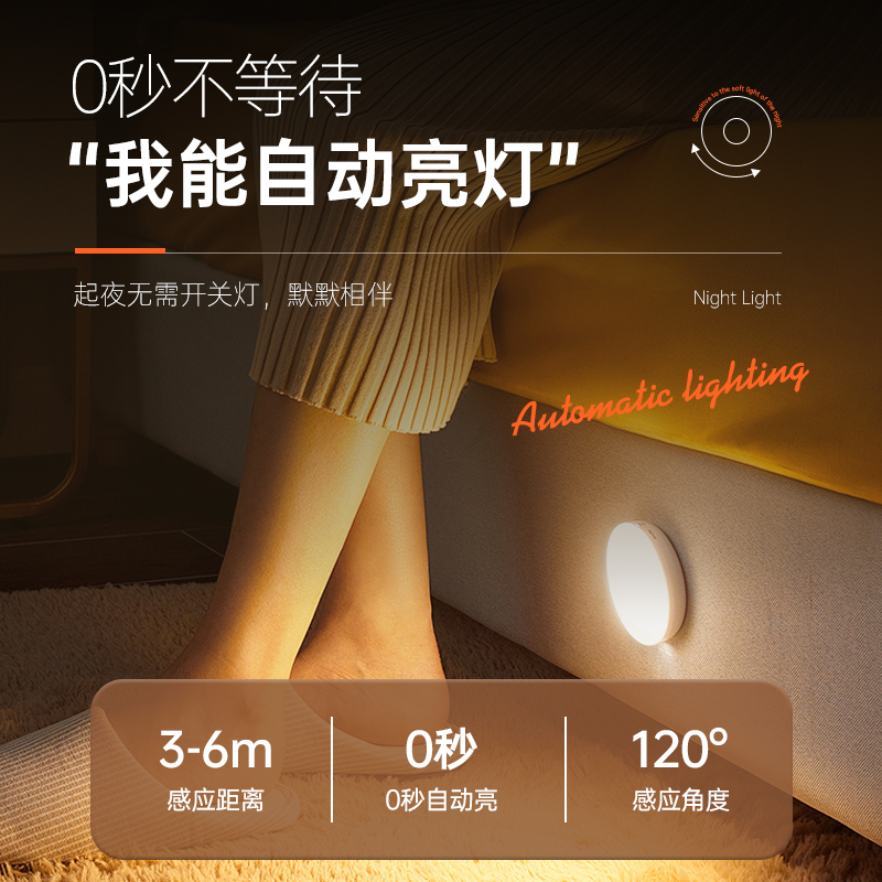 2025新款 人体感应灯夜间自动亮灯家用走廊过道智能声控充电小夜灯