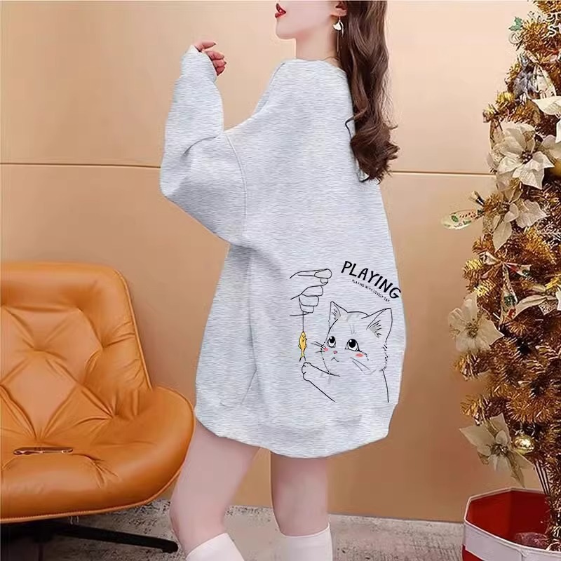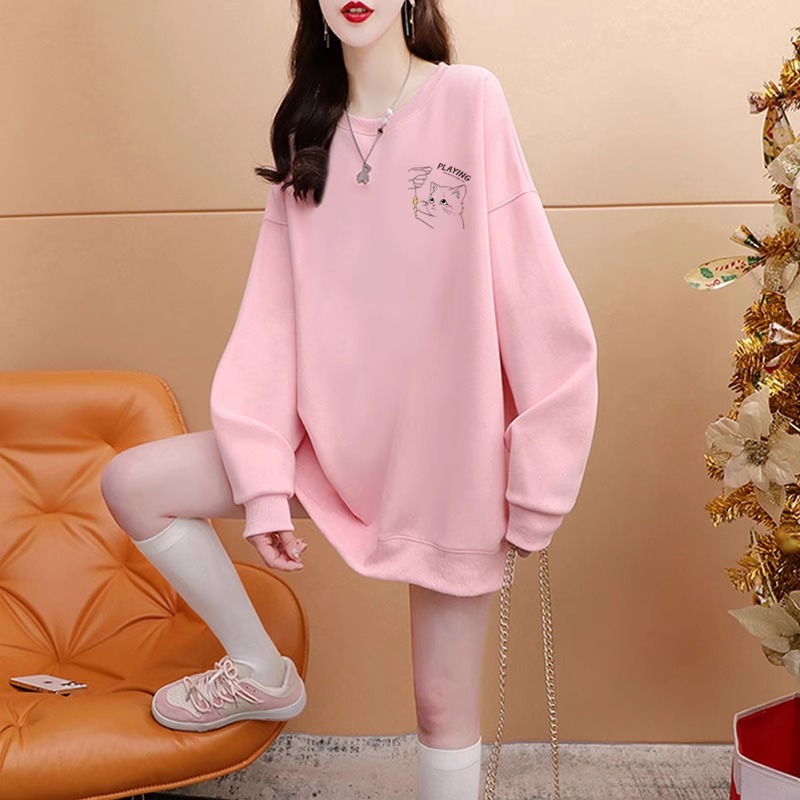 减龄长袖 2024春秋新款 宽松中长款 纯棉卡通卫衣女大码 t恤上衣 爆款