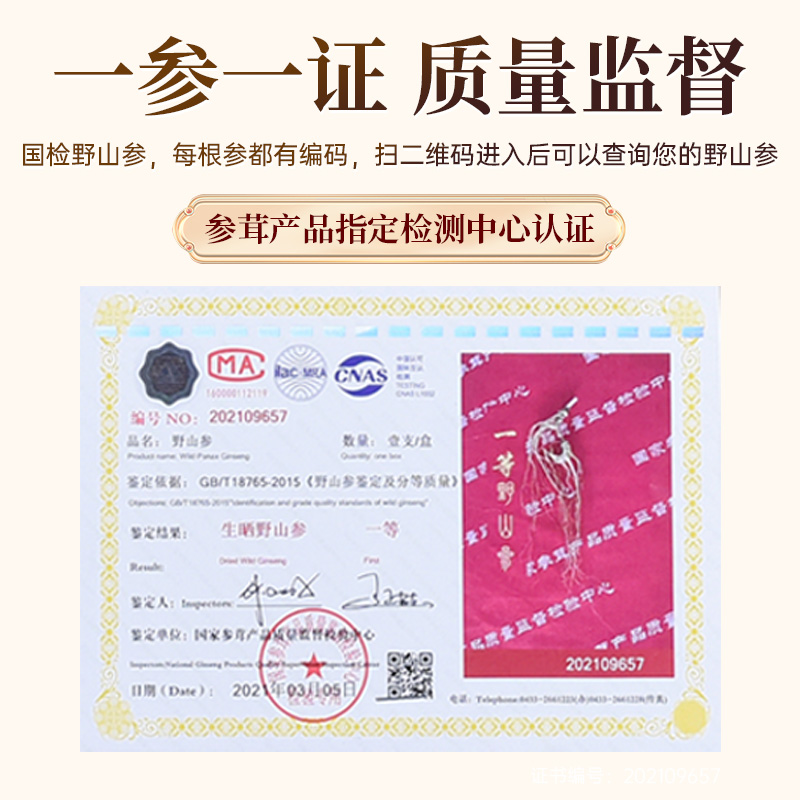 长白山人参野山参礼盒2支装 节日送长辈高档礼物带野山参鉴定证书