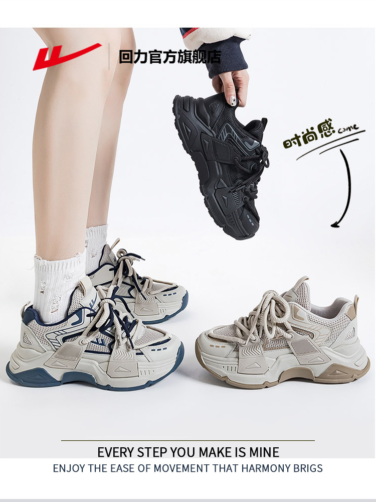 运动鞋 情侣厚底内增高休闲鞋 女2025春秋新款 回力官方旗舰店老爹鞋
