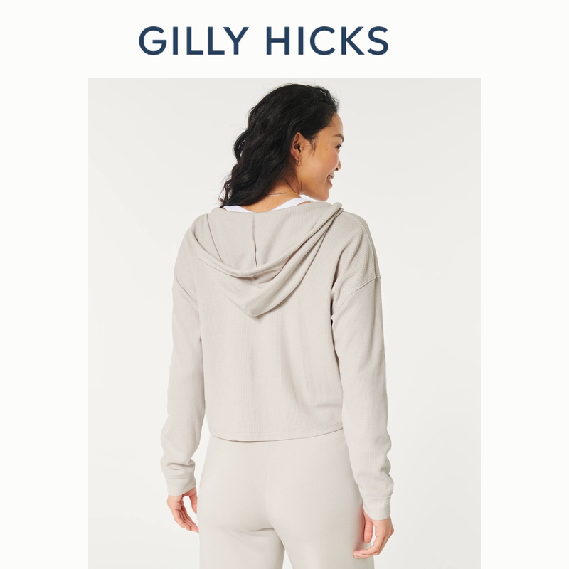 355599 GillyHicks24春秋款 华夫格宽松舒适V领连帽卫衣女装