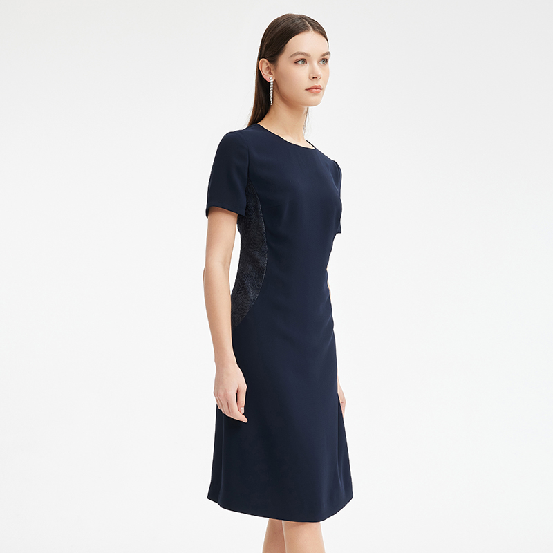 Couture 风半高领拼接长裙32517D002 Made连衣裙2025夏轻熟法式