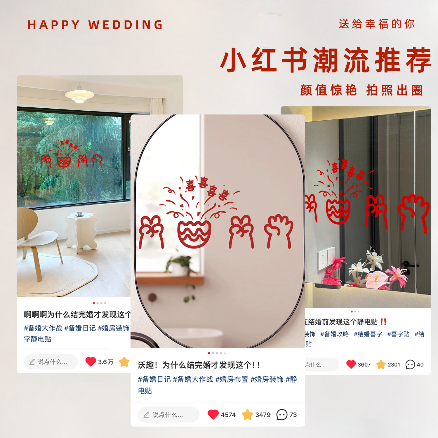 结婚专用喜字贴婚房布置装 婚礼用品 饰玻璃囍窗花静电贴婚车贴套装