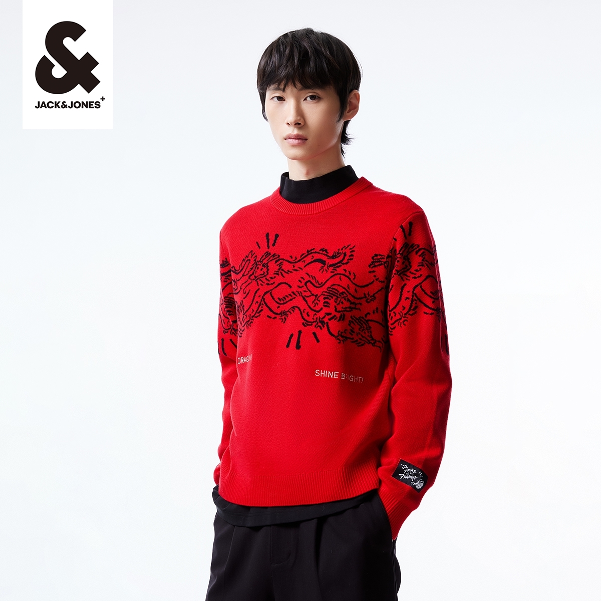 针织打底衫 保暖内搭爸爸装 毛衣加绒加厚假两件新款 红蜻蜓中年男士