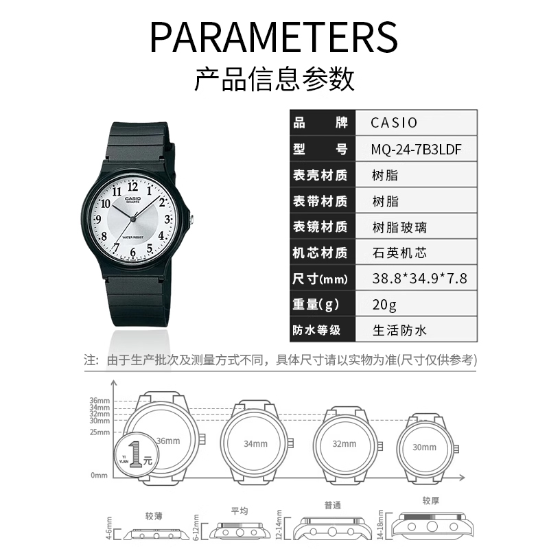 复古小黑表运动学生考试专用指针男款 石英表卡西欧手表女MQ