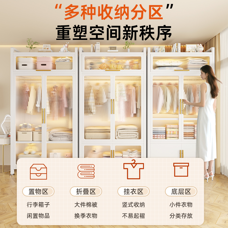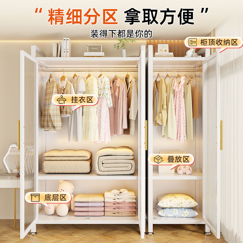 简易衣柜卧室家用出租房用组装 衣橱小户型收纳柜子 金属全钢架新款
