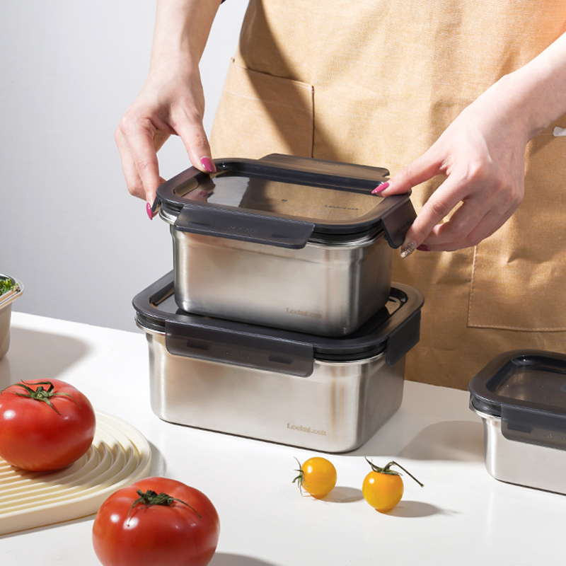 乐扣乐扣保鲜盒316不锈钢水果便当盒密封食品级冰箱外带盒长方形