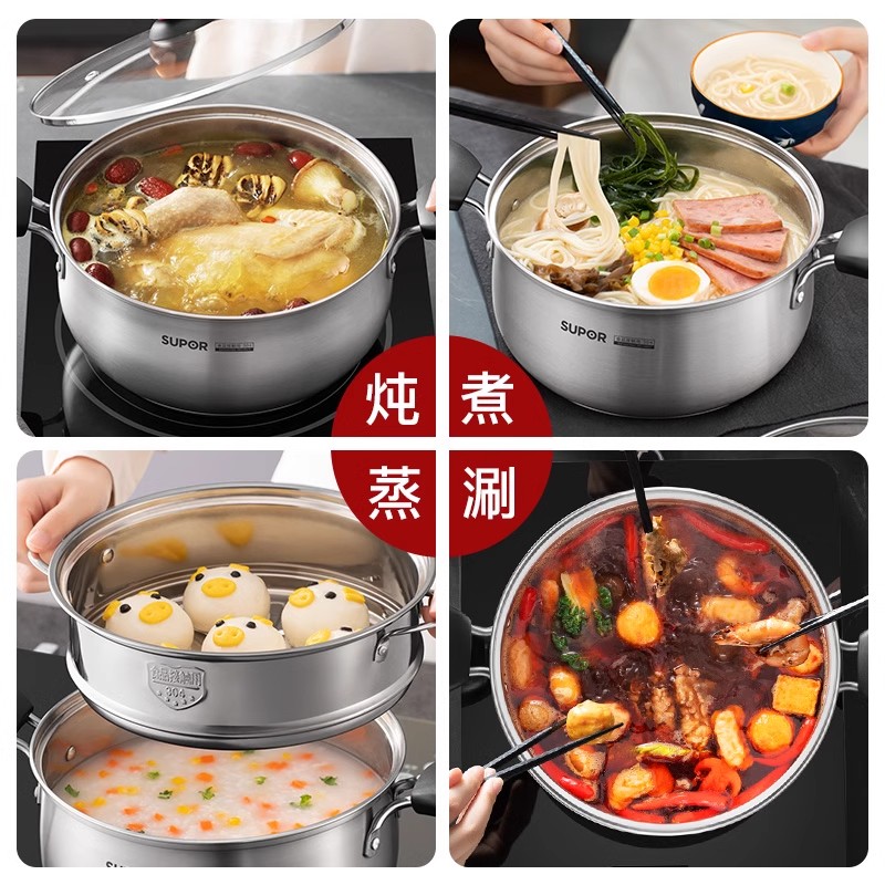 苏泊尔汤锅304不锈钢加厚家用蒸锅煮粥锅煮锅蒸煮双耳电磁炉炖锅