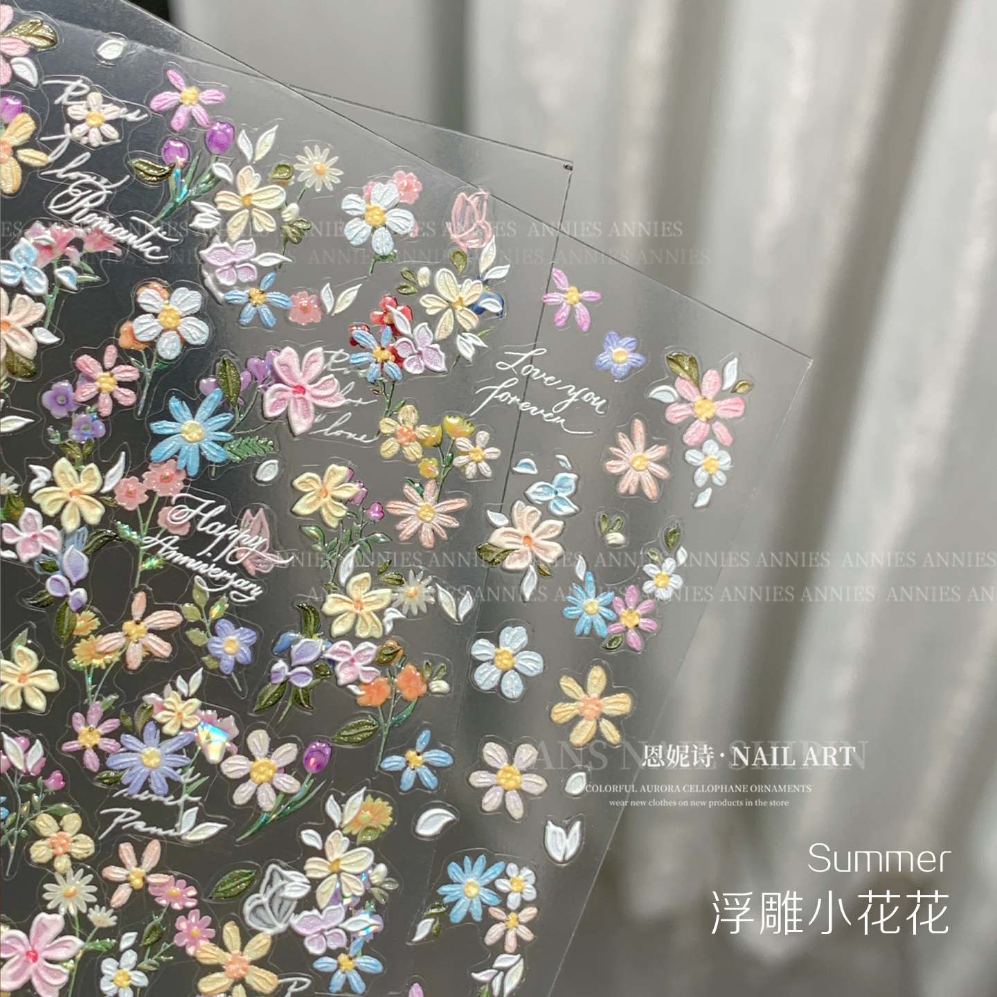 恩妮诗网红刺绣花园浮雕2025年新款 饰品美甲纸 小花雏菊指甲贴花装