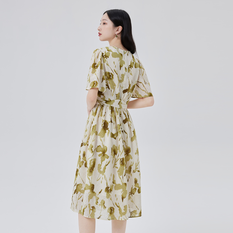 气质长裙V领设计法式 艾莱依商场同款 显瘦时尚 修身 连衣裙清仓 夏季