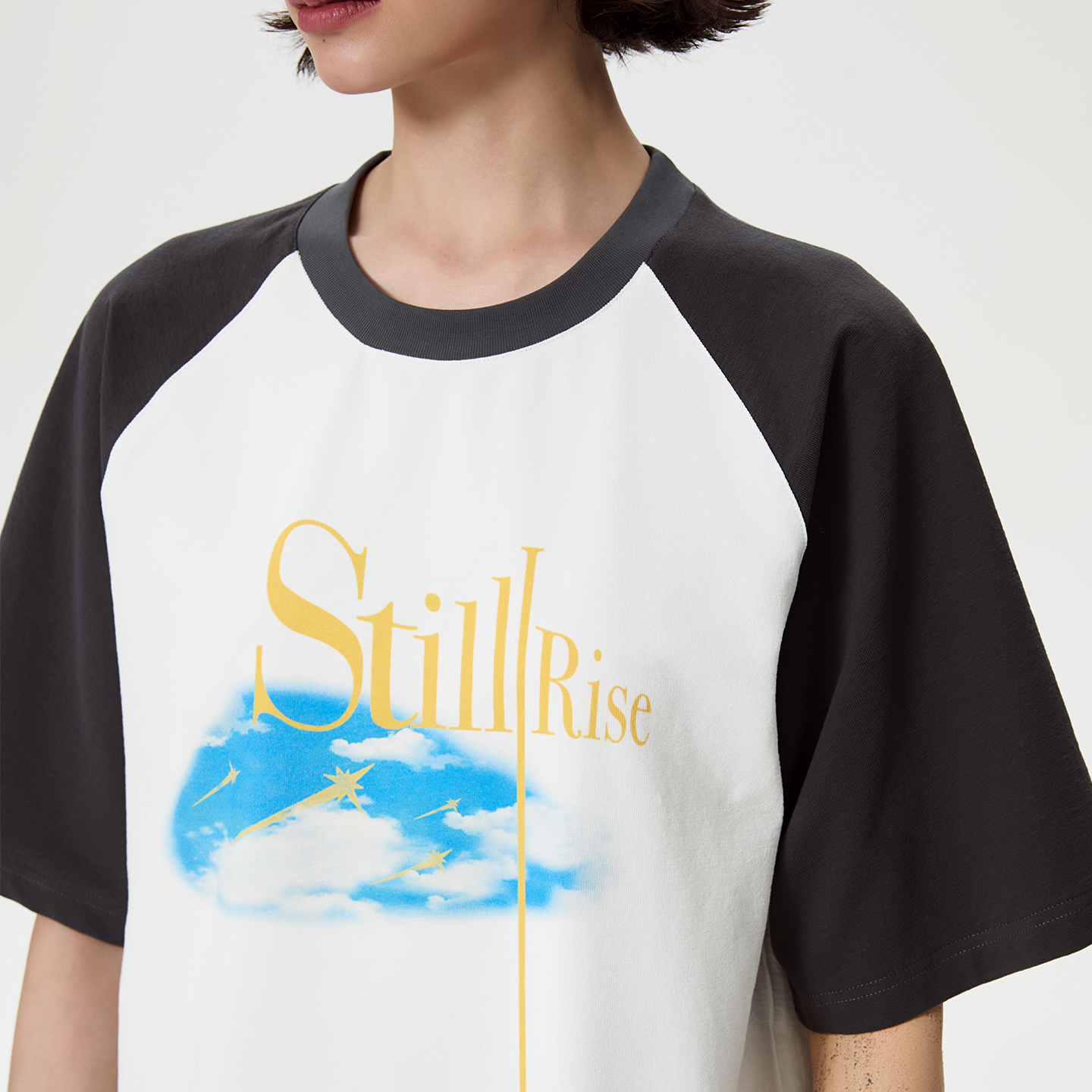 云朵印花圆领短袖 ALL 灰白撞色插肩袖 新款 T恤女 BEINGS25SS夏季