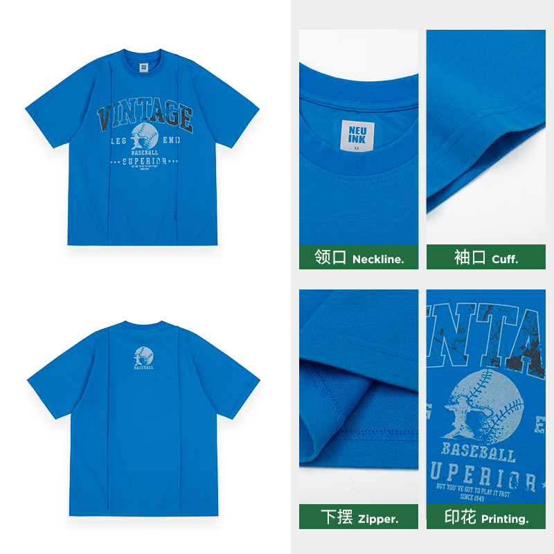 夏2025新款 情侣短袖 宽松圆领男球衣 t恤潮牌男女款 NEUINK复古美式