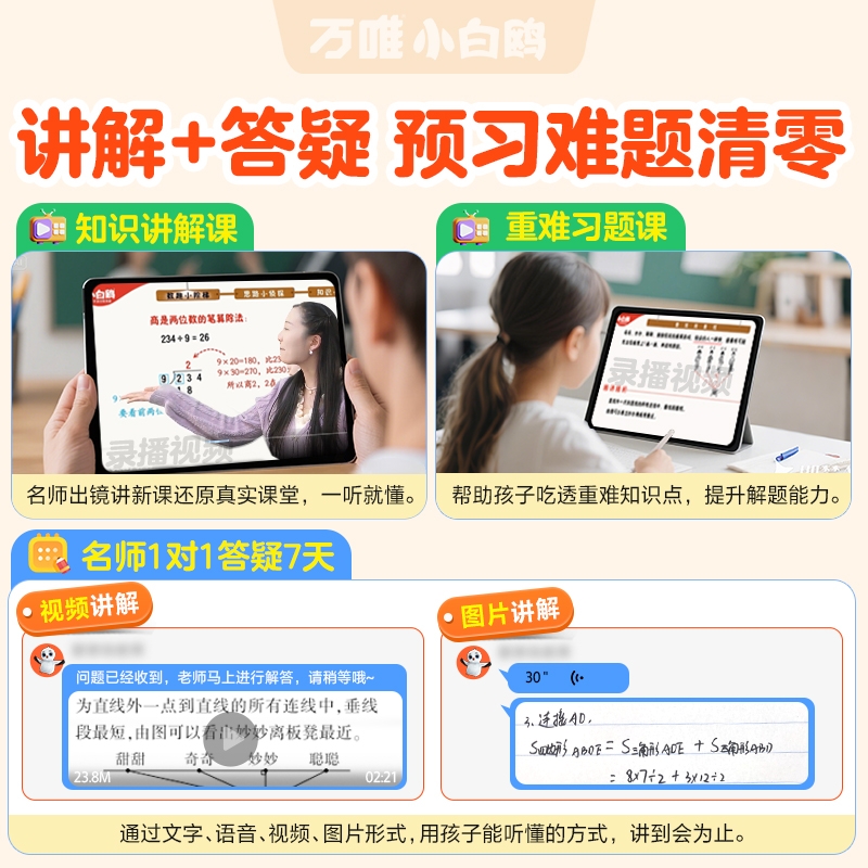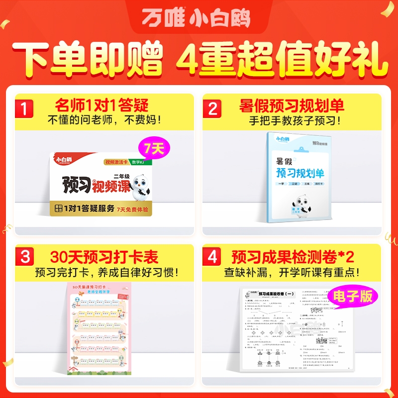 2026万唯小白鸥预习视频课一二三四五六年级上册语文数学英语人教版 基础知识小学暑假作业衔接教材一升二升三升四同步句子讲解计算