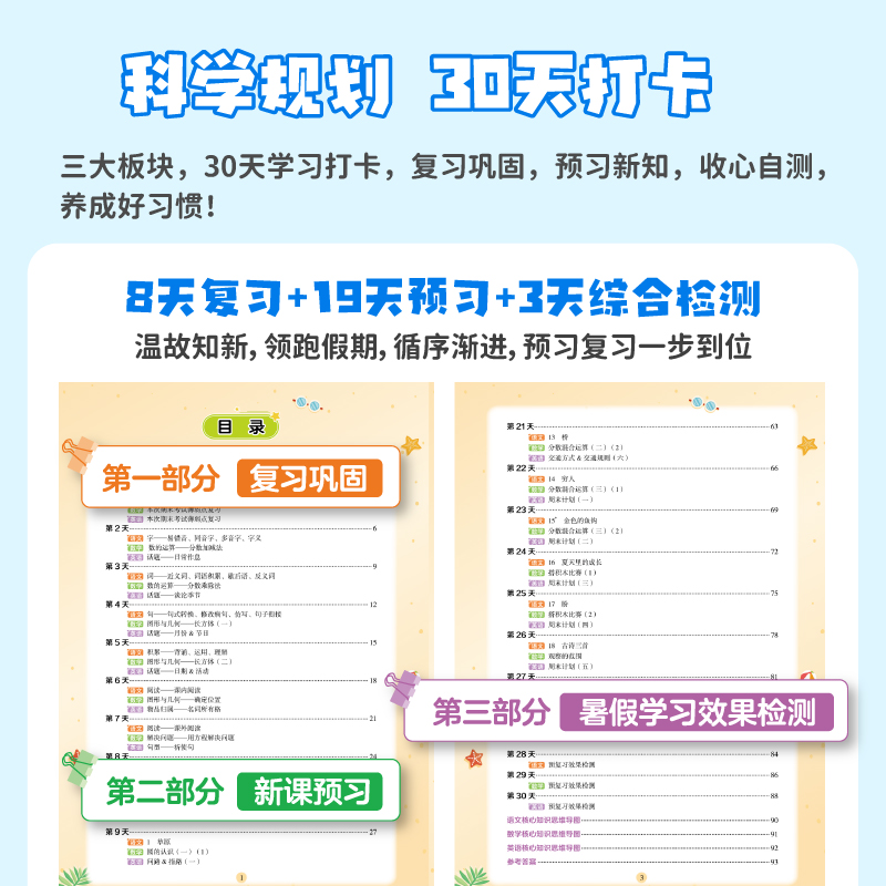 暑假预复习一本通五升六暑假作业五年级下册假衔接三合一语文数学英语人教版 提优练习30天打卡计划暑假作业阅读口算专项训练习暑假