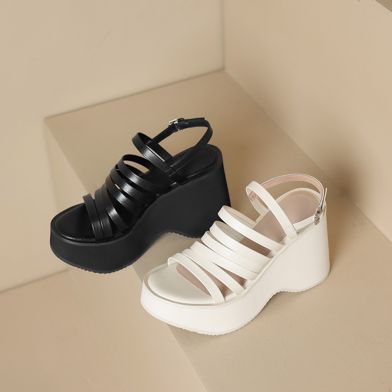 松糕厚底百搭罗马高跟鞋 女2025夏季 白色坡跟凉鞋 小个子显高新款